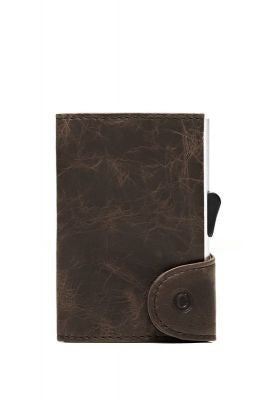 C-Secure turvalompakko / luottokorttikotelo kolikkotaskulla, tummanruskea nahka tarjous