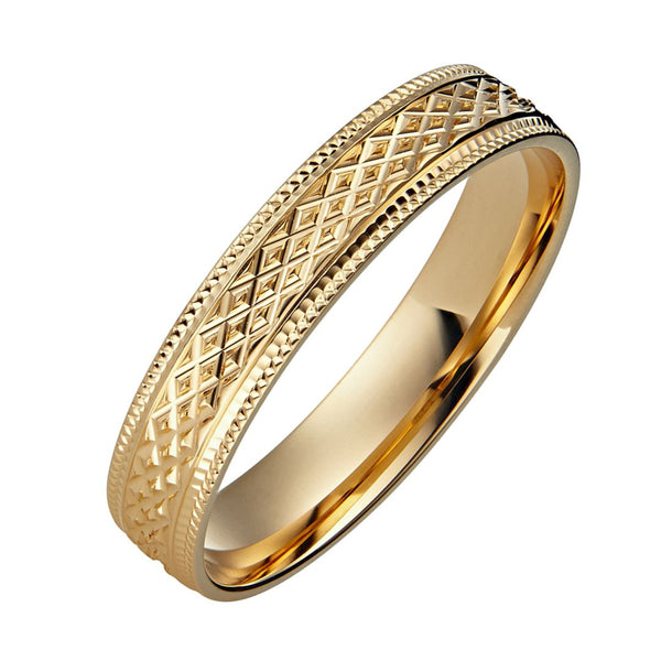 Kohinoor kihlasormus, keltakulta, 4 mm, timanttileikattu pinta, 003-622