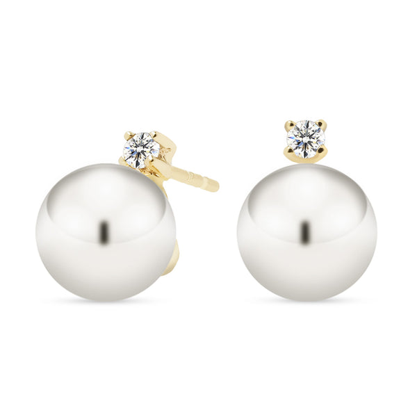 Kultaiset helmikorvakorut aidoilla makeanveden helmillä ja zirkoniakivellä, 14K keltakulta tarjous