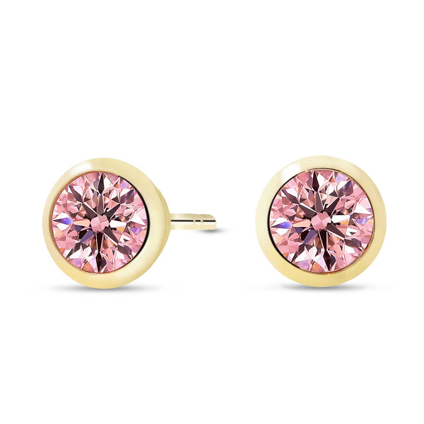 Kultaiset korvakorut 5mm pinkillä zirkoniakivellä, 14K keltakulta