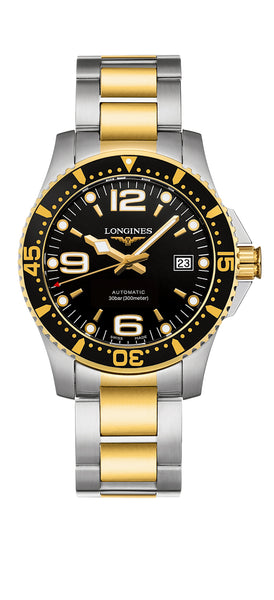 Longines HydroConquest automaattirannekello Mallinumero: L3.726.4.96.6Rungon materiaali: ruostumaton teräs, PVD-pinnoiteRungon väri: teräs / kultaRannekkeen materiaali: ruostumaton teräs, PVD-pinnoiteRannekkeen väri: teräs / kultaKellotaulun lasi: naarmuuntumaton safiirilasiKellotaulun leveys: 41 mmKellotaulun väri: mustaVesitiiviys: 300 metriä (30 bar)KalenteriAutomaattirannekelloHuomioithan, että tämä on tilaustuote, joten toimitusaika saattaa olla normaalia pidempi. Myönnämme käyttämättömiin palautettuihin tuotteisiin ainoastaan vaihto-oikeuden.Katso koko Longines-rannekellovalikoimamme tästä!