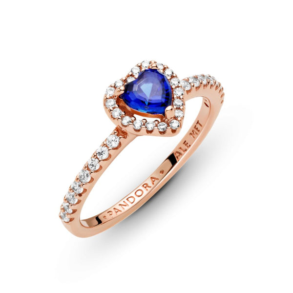 Pandora Timeless Sparkling Blue Elevated Heart sormus, ruusukullattu, 188421C01