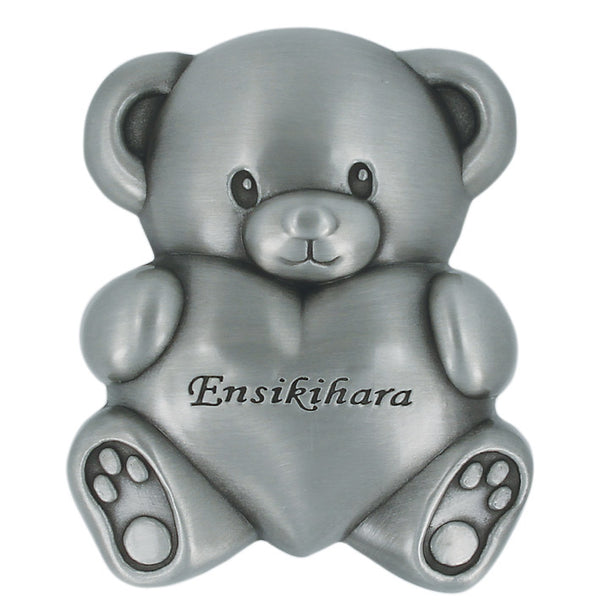 Nallen muotoinen rasia ensikiharalle Teksti ruotsinkielinen: Min första lock