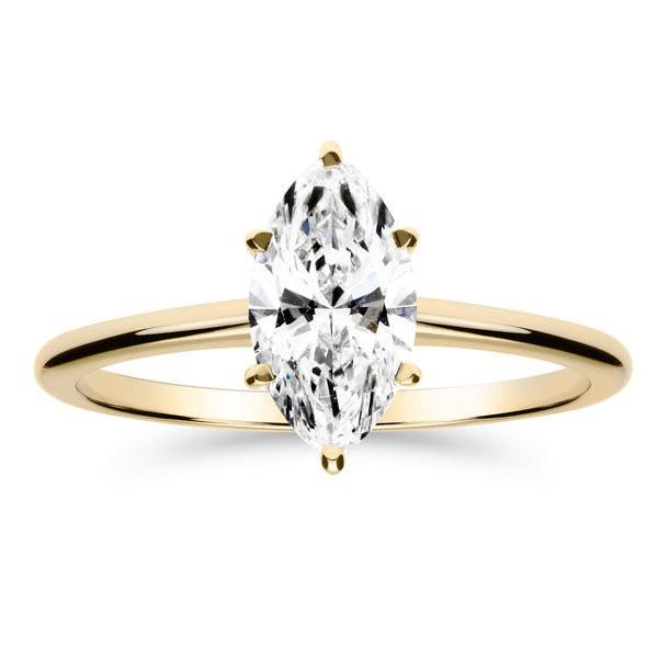 Näyttävä keltakultainen Silván-timanttisormus markiisi-hiotulla timantilla Upeassa Silván Solitaire timanttisormuksessa on näyttävä 1,00ct markiisi-hiottu timantti ja siro, trendikäs runko. Sormuksen runko on valmistettu kokonaan 14 karaatin kierrätetystä kullasta. Silván Solitaire markiisi-timanttisormus on hienostunut, trendikäs ja minimalistinen valinta nykypäivän morsiamelle. Tuotetiedot Tuotenumero: 001816100KKMateriaali: 14K KeltakultaTimantit (valittavissa): luonnontimantti tai laboratoriotimanttiTimantin paino: 1,00ctTimanttien väri: H tai G (luonnontimantti)Timanttien puhtaus: VS1 tai VS2 (luonnontimantti)Timanttien hionta: MarkiisiTimanttikorun aitoustodistus: Kyllä, GIA-sertifikaatti luonnontimantilla ja IGI-sertifikaatti laboratoriotimantillaRungon profiili: puolipyöreäValmistettu Suomessa Kotimaiset Silván-korut Kotimaiset Silván-korut valmistetaan käsityönä Hyvinkäällä, Laatukorun omalla kultasepänverstaalla. Kaikki korumme on valmistettu kestämään jokapäiväistä käyttöä. Tarjoammekin Silván-koruillemme elinikäisen tuotetakuun valmistusvirheiden osalta. Silván-korujen laadukkaat timantit ovat huolellisesti luokiteltuja painon, värin, puhtauden sekä hionnan mukaan, ja niiden alkuperä on jäljitettävissä. Käytämme vain konfliktivapaita timantteja, jotka ostamme alan standardeihin sitoutuneista eurooppalaisista timanttipörsseistä. Silván-timanttisormuksen mukana toimitetaan aina aitoustodistus. Vastuullisten ja laadukkaiden timanttien lisäksi Silván-koruihin käytetystä kullasta 100-prosenttia on kierrätettyä. Silván-timanttikorut valmistetaan tilauksesta juuri sinulle, joten niiden toimitusaika on yleisimmin 5–8 arkipäivää. Kaikkia Silván-koruja voidaan myös muokata verstaallamme erikoistilaustyönä. Tässä tapauksessa olethan yhteydessä asiakaspalveluumme. Huomioithan, että kaiverretulla sormuksella tai erikoistilaustyönä valmistetulla tuotteella ei ole vaihto- tai palautusoikeutta. Silván. Ikuista. Suomalaista. Katso kaikki Silván-timanttikorut verkkokaupastamme täältä
