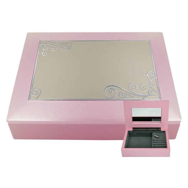 Vaaleanpunainen korulipas soittaa Für Elise -sävelmää Vaaleanpunaisessa, soivassa korulippaassa on lokeroita, joissa korut säilyvät kauniina. Kannessa on metallilaatta, johon voi kaivertaa. Korulippaan sisällä on peili ja siinä on harmaa vuoraus. Lipas soittaa Für Elise -sävelmää Koko: 18 x 5 x 13 cmTuotenumero: 078813 Katso kaikki korulippaat täältä