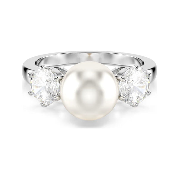 Swarovski Matrix sormus, vaalea metalli kirkkailla kristalleilla ja valkoisella helmellä tarjous