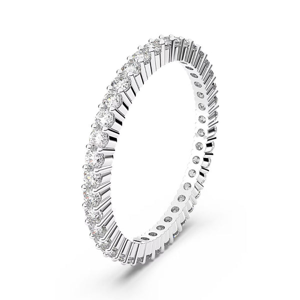 Vaalea Swarovski Matrix Vittore -sormus kirkkailla kristalleilla Näyttävässä Swarovski Vittore -sormuksessa on säihkyvä rivi kirkkaita kristalleja, jotka kiertävät sormuksen ympäri kauttaaltaan. Sormus on saatavilla neljässä eri koossa: 50, 52, 55 ja 58. Sormuksen materiaalina on Swarovskin korumetalli, joka on rodinoitu kauniin vaaleaksi. Kerrosta muiden Swarovski-korujen kanssa ja luo oma persoonallinen kokonaisuutesi. Materiaali: korumetalliKorun väri: vaaleaksi rodinoitu metalliKivet: kirkkaat kristallitSormuksen koot: 50-58Katso kaikki Swarovski-korut täältä