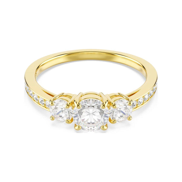 Swarovski Stilla Attract -sormus kirkkailla kristalleilla Kauniissa Swarovski Stilla Attract -sormuksessa on kolme isoa kristallia tyylikkäissä kruunuistutuksissa sekä pienemmät sivukristallit upotettuna sormuksen runkoon. Sormus on saatavilla eri kokoisina: 50, 52, 55, 58. ja 60. Sormuksen materiaalina on Swarovskin korumetalli, joka on pinnoitettu keltakullanväriseksi. Kerrosta muiden Swarovski -korujen kanssa ja luo oma persoonallinen kokonaisuutesi. Materiaali: korumetalliKorun väri: keltakultaKivet: kirkkaat kristallitSormuksen koot: 50-60 Katso kaikki Swarovski-tuotteet täältä