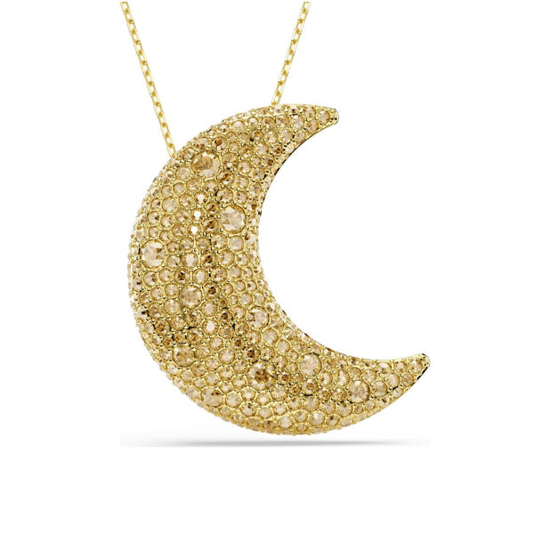 Keltakullattu Swarovski Sublima -riipus kullanvärisillä kristalleilla Tyylikkäässä Swarovski Sublima -riipuksessa on kookas kuunsirpinmuotoinen riipus, joka on koristeltu kauttaaltaan erikokoisilla kullanvärisillä kristalleilla. Riipuksen materiaalina on 18K keltakullattu Swarovskin korumetalli ja sen koko on 4,2 x 3,8 cm. keltakullatussa ketjussa on liukulukko, jonka avulla ketjun pituutta voi säätää. Ketjun maksimipituus on 75 cm. Yhdistä mystiikkaa henkivä riipus muiden Swarovski Sublima -korujen kanssa ja luo oma juhlatyylisi. Materiaali: 18K keltakullattu korumetalliKivet: kullanväriset kristallitRiipuksen koko: 1,6 x 1 cmTuotenumero: 5710931 Tutustu kaikkiin Swarovski-tuotteisiin täältä