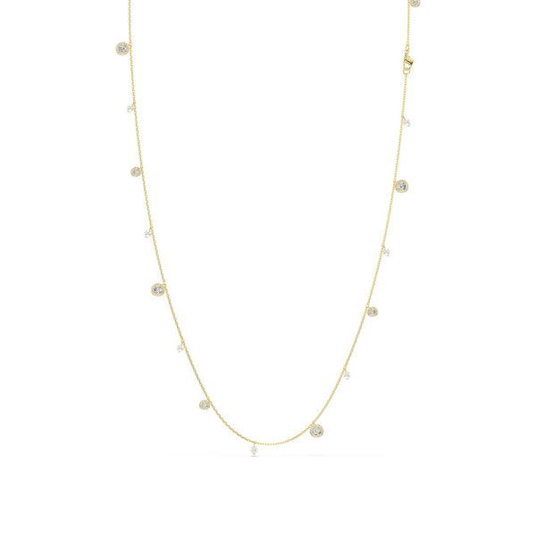 Keltakullattu Swarovski Una Angelic -kaulakoru kirkkailla kristalleilla Swarovski Una Angelic -kaulakorussa on valkoisia helmiä sekä säihkyviä korunosia, joissa keskikristallia ympäröivät pienemmät halokristallit. Korunosat ja helmet on aseteltu koruun koko keltakullatun ketjun matkalta. Kaulakoru koostuu kahdesta osasta: 70 cm pitkästä ketjusta sekä 20 cm pitkästä jatkopalasta. Voit käyttää korua yhtenä pitkänä ketjuna tai kietaista jatkopalan ranteen ympärille. Kaulakorun materiaalina on 18K keltakullattu Swarovskin korumetalli. Yhdistele muiden Swarovski Una Angelic -korujen kanssa ja luo oma tyylisi. Materiaali: 18K keltakullattu korumetalliKivet: kirkkaat kristallitHelmet: valkoiset kristallihelmetKaulakorun pituus: 70 cm tai 90 cm jatkopalallaKaulakorun leveys: 0,8 cmTuotenumero: 5742380 Katso kaikki Swarovski-tuotteet täältä