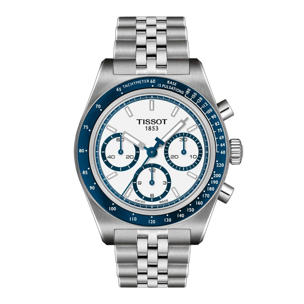Teräksenharmaa Tissot PR516 Quartz Chronograph rannekello T1494621101100 sinivalkoisella kellotaululla Tissot PR516 Quartz Chronograph on 1960-luvun moottoriurheilusta tyylinsä saanut rannekello. Valjoux-kronografilla ja takymetriasteikolla varustettu kvartsikoneiston kello tarjoaa helppoutta ja tinkimätöntä laatua autourheilua harrastaville sekä siitä inspiroituville. Tässä mallissa on harmaa 41 mm leveä teräskuori ja kolmirivinen teräsranneke. Teräksenharmaasta kokonaisuudesta erottuu valkoinen kellotaulu sinisillä yksityiskohdilla. Kellotaulua kiertää sininen takymetriasteikko. Osoittimet ja indeksit on luminoitu, mikä helpottaa kellon lukemista myös pimeässä. Kellon vesitiiveys on 100 metriä ja kellotaulua suojaa naarmuuntumaton safiirilasi, jossa on heijastuksenestokäsittely. Tissot on perinteikäs sveitsiläinen kellovalmistaja, jonka mallistosta löytyy laadukkaita kelloja moneen makuun ja tyyliin. Tissot on vuodesta 1983 asti ollut osa Swatch Groupia, mutta sen juuret ulottuvat aina vuoteen 1853, jolloin kultaseppä Charles-Félicien Tissot perusti poikansa kanssa Sveitsin Le Locleen kelloverstaan.> Tuotenumero: T149.462.11.011.00Kuoren materiaali: ruostumaton teräsKuoren väri: teräksenharmaaKellon halkaisija: 41 mmKellon paksuus: 14,19 mmRannekkeen materiaali: ruostumaton teräsRannekkeen väri: teräksenharmaaRannekkeen lugiväli: 20 mmKellotaulun väri: valkoinen, siniset yksityiskohdatPaino: 172 gSafiirilasi, heijastamatonValjoux-kronografiTakymetriasteikkoVesitiiviys: 100 mKoneisto: kvartsi Katso kaikki Tissot-kellot täältä