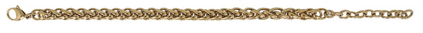 Teräksinen kultadublee-vehnäranneketju Tyylikäs ja kestävä teräksinen kullanvärinen ranneketju. Materiaali: kullalla päällystetty teräs 316LPituus: 20-25 cm (säädettävä)Paksuus: noin 8mm