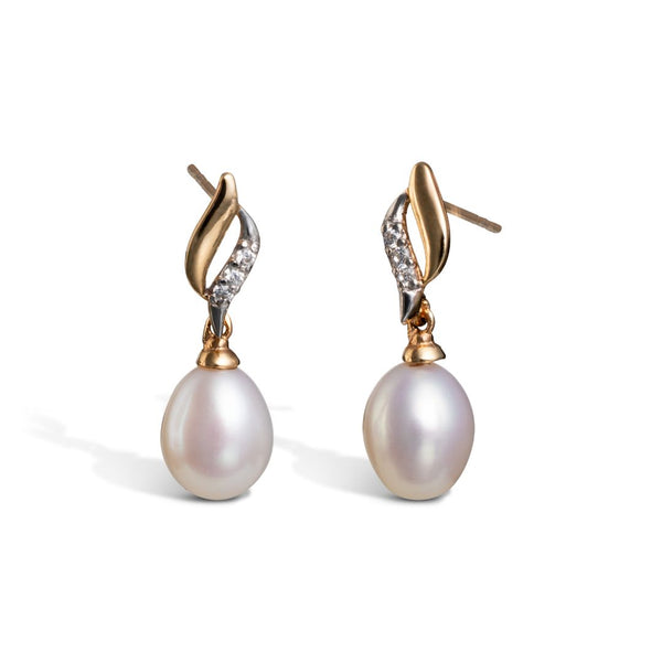 Vittoria korvakorut zirkoneilla ja makeanveden helmillä, keltakultaa tarjous